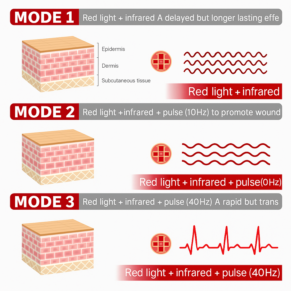 Slim Mode – Targets stubborn fat using focused red light to shrink fat cells and define your waistline.