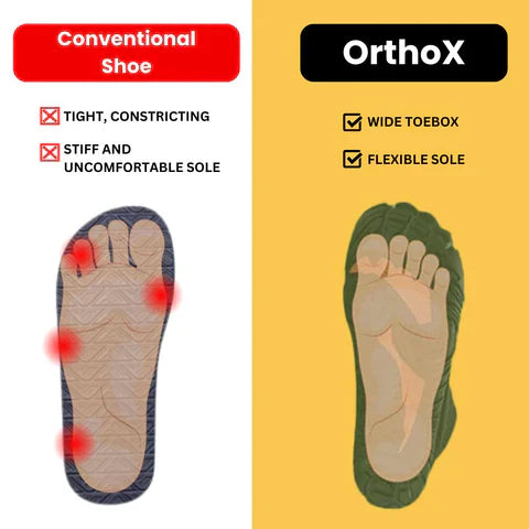 with orthopedic cushioning and breathable design, orthox™ adapts to your stride and eases heel, knee, and back pain.
